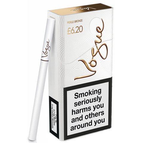 Los cartuchos se componen de 10 paquetes envueltos individualmente de cigarrillos Vogue Perle Bronze.